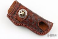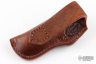 This leather belt sheath by A&M Leather is handcrafted from top quality leather. Has hole in the bottom of the sheath to push the knife out easier. Made primarily for slipjoints with a 1" wide opening and 3.25" pocket. New from maker!