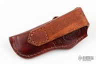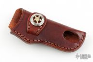 This leather belt sheath by A&M Leather is handcrafted from top quality leather. Has hole in the bottom of the sheath to push the knife out easier. Made primarily for slipjoints with a 1" wide opening and 3.25" pocket. New from maker!