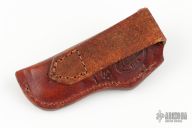 This leather belt sheath by A&M Leather is handcrafted from top quality leather. Has hole in the bottom of the sheath to push the knife out easier. Made primarily for slipjoints with a 1" wide opening and 3.25" pocket. New from maker!