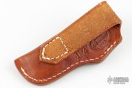This leather belt sheath by A&M Leather is handcrafted from top quality leather. Has hole in the bottom of the sheath to push the knife out easier. Made primarily for slipjoints with a 1" wide opening and 3.25" pocket. New from maker!