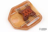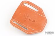 Pancake Rawhide & Leather Belt Sheath by A&M Leather. Has hole in the bottom of the sheath to push the knife out easier. Made primarily for slipjoints with a 1.75" wide opening and 3.25" pocket. New from maker!