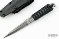 This OSS Dagger is part of the small prototype run and is a mid-tech that Jason himself worked on. Comes with original box, and kydex sheath. Handle has black and gray handle wrap. New from maker.