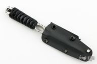 Designed by renowned Master Bladesmith Jason Knight, this modern interpretation of the concept is crafted from tough A2 tool steel. Its one-piece integral construction features a meticulously machined radial texture pattern on both sides of the coffin-shaped handle. Symmetrical grooves at both ends of the handle provide additional grip security and are complemented by an oval lanyard hole. The stout, perfectly symmetrical dagger blade is accented by central fullers on both sides and features two full-length cutting edges.