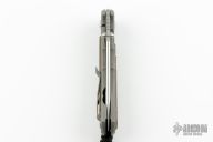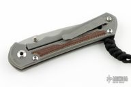 This Large Inkosi from Chris Reeve Knives features a tumble finished blade with dual thumb studs and notched thumbrest. The handle has a bead blasted titanium frame over a single barrel spacer with a matching titanium tip up clip. Natural canvas micarta Inlays. Comes with original box, sheath, anodized titanium clip, lanyard and tooles, COA dated April 28, 2022. Excellent Condition.