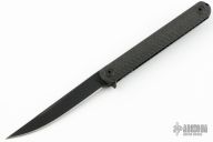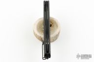 This Nemec Flipper by Spartan Blades features a black blade with notched thumbrest and flipper. The handle has a milled carbon fiber scales over black steel liners and a matching tip up pocket clip.  Includes the original box and papers.  Excellent Condition.