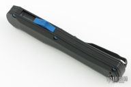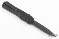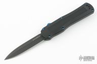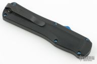 This Autocrat model has a black G-10 handle and a black finished dagger blade. The Autocrat is the first OTF offering from Benchmade featuring a milled composite G-10 handle. It is a high performance tactical auto, defined by both speed and style. The ergonomic handle successfully blends the durability and wear resistance of G-10, with the flashy style of blue sapphire titanium coated hardware and components. Item comes complete with a reversible deep-carry pocket clip. Features: Spine-fire release OTF automatic action for rapid, one-hand deployment. Reversible tip-down pocket clip allows for left or right side ambidextrous carry. Premium CPM-S30V double-edge dagger blade provides excellent strength and edge retention. Comes with original box and papers. Excellent condition.