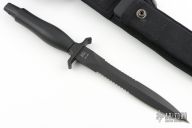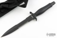 The Mark II is one of the best selling knives of all time. First introduced in 1966, this tactical knife is serialized for collectors. This knife features a black coated double serrated blade and die-cast aluminum handle, .238" blade stock and .903" blade depth. It also comes with a ballistic nylon sheath. Excellent condition. "0871113D 12AGN 13318" on the blade.