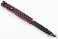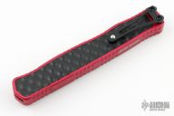This Cleric II OTF by Heretic Knives features a black double edged Magnacut blade. The handle has a red aluminum frame with black bubble inlays, DLC titanium tip down clip, left or right reversible. S/N 00517. Has a couple light scuffs, excellent condition otherwise.