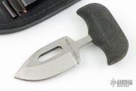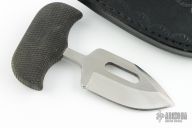 This "Urban Skinner" Push Dagger by Cold Steel has a satin finished spear point blade with a sharpened top edge, hidden tang, .185" blade stock, 1.296" depth. Handle is non-slip polymer. Has a few light scratches, otherwise excellent condition. Comes with black leather sheath with clip. This is an early version of the Safe Keeper.