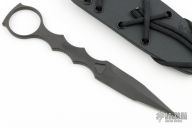 "The Spartan CQB tool is aptly named and specially designed for Close Quarters Battle. The CQB tool is a ring dagger with a kydex sheath. The sheath compliments the ring on the end the knife for quick removal. The sheath is designed to lash into MOLLE /PALS behind magazine or other front pouches on a vest or be carried on belt or inside the waist band. The design concept of the CQB tool originates with Greg Thompson, an instructor of close quarters fighting techniques (Hand To Hand) for the US Special Forces. Mr. Thompson is owner / founder of the H2H/Team ROC of the Fort Bragg based training group and developer of the Special Operations Combatives Program (SOCP). Mr. Thompson developed the new combatives program for US Army Special Operations Forces and this CQB tool is part of program gear. The CQB Tool or "transition tool" is used to compliment this program by providing a slim easily stowed knife with rapid acquisition for, "get the heck off me", grappling situations encountered in a CQB fight. The ring and slim profile design allows for the operator to quickly pull and utilize the dagger; breaking an attackers grasp and allowing the soldier to transition back to his primary weapon system without resheathing until safe to do so. Includes a kydex sheath and the original box. Excellent condition.