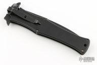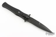 This Madd Maxx 5.5" Assisted Flipper is a Darrel Ralph Design executed by HTM Knifes. It features a black coated bayonet ground blade with false top edge, fullers, dual thumb studs and flipper. The handle is comprised of a blackened titanium frame with carbon fiber overlay over barrel spacers. Black coated steel tip down clip and lanyard hole in pommel. Includes padded and zippered case. Has some light scuffs and scratches, great condition otherwise.