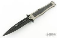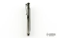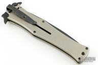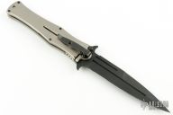 This assisted opening HTM (Hand Tech Made) Madd Maxx features a bayonet style black coated blade with a false top edge, and a bead blasted titanium frame with a 3D machined carbon fiber scale on one side. Black Stainless steel clip. Strong and fast opening. Perfect function. Comes with original box. Has some scuffs, otherwise excellent condition.