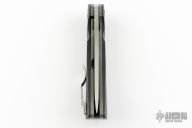 The Nati Amor designed Spyderco Subvert is a large folding knife revealed at Spyderco's 2018 Amsterdam Meet. This folder sports a clean, balanced aesthetic based on Nati's handmade Sabotage custom. It features carbon fiber scales over thick bead blasted titanium liners. Its blade has a satin finish, high flat grind, and a generously bellied edge. Add a unique Nati Amor design to your collection today! Features: A heavy duty titanium liner lock offers dependable blade lock up. Stainless steel clip for tip-up pocket carry. 3D textured G-10 handle scales provide a secure and comfortable grip. Comes with original zipper case. Excellent condition.