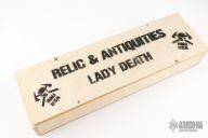 In The Box: Lady Death Trench Knife, Sheath, lanyard with bead, Lady Death Playing Card, user documentation.