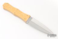 This dagger from William Pass features a mirror polished double edge blade with .157" blade stock and 1.078" blade depth, and full tapered tang construction. The handle has vintage paper micarta scales. Comes with a zipper case. Has some light scuffs, excellent condition otherwise.