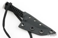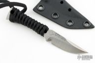 This mini fixed blade by Strider features a satin finished blade with false top edge, .218" blade stock and .612" blade depth, full tang construction with cord wrap. Comes with a kydex sheath. Excellent condition.