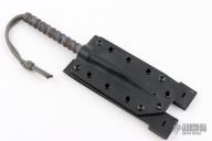 This MOAS by Black Thorn Engineering features a flamed finished blade and handle with paracord lanyard. Comes with Kydex sheath with belt loops. Has some scuffs and scratches, great condition otherwise.