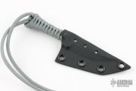 This mini fixed blade by Strider features a satin finished blade with false top edge, .214" blade stock and .736" blade depth, full tang construction with cord wrap. Comes with a kydex sheath. Excellent condition.