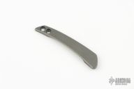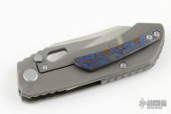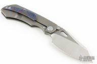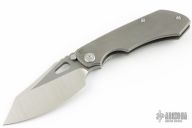 This Evolution 4.0 by Custom Knife Factory features a satin/tumble finished blade with notched thumbrest and thumbhole. The handle has a tumbled bark finished titanium frame with a backspacer with a ZircuTi tip up pocket clip. Comes with velcro case, extra hardware, original clip and COA. Nice detent, lockup and blade seating.  #139 and dated 1-24.  Excellent condition.
