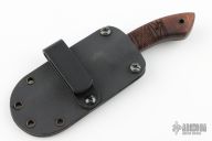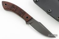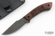 Jason Knight Design by Winkler Knives. Black blade with notched thumbrest, .162" blade stock and .977" blade depth, full tang construction. The handle has tibal pattern walnut scales. Comes with original box, sheath and papers. Excellent condition.
