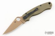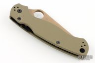 This Paramilitary 2 Linerlock Folder from Spyderco has a Flat Dark Earth finished clip point blade with thumbhole and notched thumbrest. Handle is green  G-10 with stainless steel liners and flat dark earth 4-way reversible clip. Comes with original box and papers. Excellent condition.