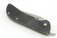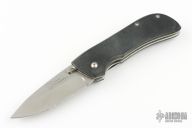 This Savant by REKAT features a stonewashed blade with single thumbstud. The handle has black G-10 scales, stainless steel liners and tip down pocket clip. These knives feature the patented Rolling Lock Blade Locking System. Designed by Pat Crawford. Excellent Condition.
