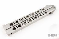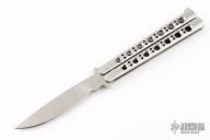 The model 48 by Benchmade is rare and hard to find. Has a satin finished drop point blade. Stainless steel skeletonized handles with T latch. Comes with original box, papers, and belt sheath. Excellent condition.
