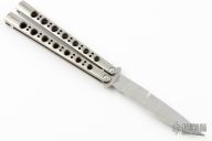This Model 42S by Benchmade features a satin finished partially serrated blade. The handles are satin finished titanium. No T-latch. Comes with original box, sheath and papers. Has some scuffs and scratches, good user condition.