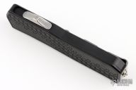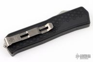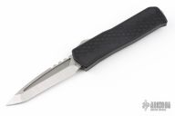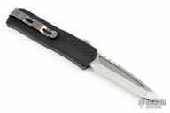 This OTF by Medford Knives features a stonewashed drop point (Tum Tanto) blade with fuller and notched blade spine. The handle features a milled and black aluminum body and stonewashed/polished push button with tip down stonewashed/polished titanium clip. Comes with orignial box, zipper case, and papers. Box is signed on the interior. Excellent condition.