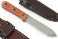 There is enough length to do big jobs, but the blade is still nimble and eager to move. Roughly 5/32" thick at the widest point, the unique grind makes the knife seem thinner in use, more like an 1/8" blade. It is a terrific slicer and works well for virtually any task imaginable. A slight swedge at the spine makes the blade more efficient by reducing drag when cutting through soft or fibrous materials such as vines or large game.