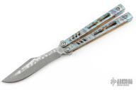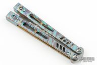 This BRS Replicant features an acid/tumble finished carved, clip point recurve blade. The handle is comprised of an anodized titanium frame over textured and anodized titanium liners and backspacers. No latch no clip.. Includes original zippered case. Has a couple light scuffs, excellent condition otherwise.