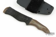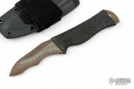 This Titanium Fixed Blade by John Gray features a heat treat finished titanium blade with .076" blade stock and 1" blade depth, full tang construction with black cord wrap. Comes with a black kydex sheath. Completely nonmagnetic. Excellent condition.
