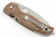 This Shaman Pin by Spyderco features a satin finished spear point blade with notched thumb and finger rests, thumbhole. The handle has green micarta scales, inlaid stainless steel liners and a satin finished stainless steel backspacer, 4-way reversible stainless steel clip, lanyard hole at the butt. Excellent condition. Comes with original box and papers.