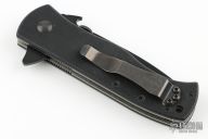 This CQC-7 from Emerson Knives features a black chisel ground tanto style blade with swedge, knurled thumb disc, wave feature and flipper. The handle has a black G10 scales over titanium liners and black barrel spacers. Black tip up steel clip and lanyard hole in pommel. Great blade seating, detent and lock up. Has a few light scratches, otherwise excellent condition.  Comes with original box and papers.