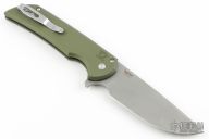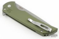 This Mordax by Pro-Tech is a Ferrum Forge design and features a stonewashed drop point blade. The handle has a green aluminum frame with a tip up stainless steel clip. Excellent condition. Comes with original box and papers.