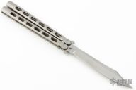 This Highroller by Mike Snody features a hand ground spear point blade with false top edge. The handles are integral titanium with bead blast finish. Very smooth flipping. Comes with a Velcro belt sheath. Has scuffs, and scratches, good condition otherwise.