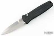 This 3551 Mini Stimulus features a stonewashed spear point blade with false top edge and a black aluminum handle with push button and safety, tip up or down reversible black stainless steel clip, lanyard hole at the butt. Excellent condition. Comes with original box and papers.