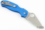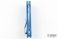 This Para 3 by Spyderco features a satin finished clip point blade with thumbhole and notched thumbrest. The handle has a blue G-10 frame over nested steel liner and stand-offs. The pocket clip is 4 way adjustable. Fitted with a LynchNW deep carry titanium clip. Includes original box, clip and paperwork. Excellent condition.