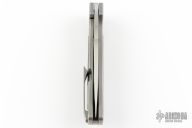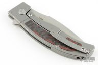 The Legatus by Dutch Blade Works features a satin finished blade with flipper. The handle has a blasted titanium frame with matching tip up clip and backspacer with lanyard pin, red G-10/carbon fiber inlays, stainless lockface insert, ceramic detent and bearings. Very nice action. Nice in hand. Comes with original box, zippered case and COA. These are a limited run of 100. Has a couple light scuffs, excellent condition otherwise.