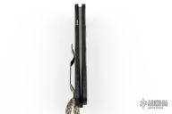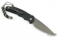 This Tactical Response features a black frame with texture, which provides good traction and looks great. The blade has a grey smoke finished blade. It fires hard, locks up like a rock, and feels great in hand.  Mother-of-pearl inlaid push button. The slim design sits comfortably for tip-up pocket carry. Comes with original box and sheath. #78 of 100. Excellent condition.