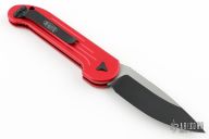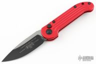 This LUDT by Microtech features a black finished blade. The handle has a red aluminum frame with black hardware and tip down clip. Comes with original box and papers. Dated 01/2023 and s/n 29462. Excellent condition.