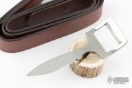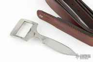 This is a belt buckle knife by Bowen USA. Has a drop point blade, .170" blade stock and .991" blade depth, integral construction. Comes with a brown leather 34" belt. Excellent condition. Comes with original box.