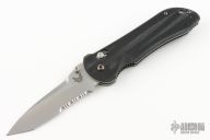 This Stryker by Benchmade has a stonewashed tanto partially serrated blade with dual thumbstuds and a notched thumbstud. The handle features black G10 scales over steel liners, a black stainless steel pocket clip. Excellent Condition.