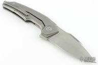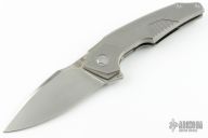 This Muscle flipper by Custom Knife Factory is a Tashi Bharucha design. It features a satin finished, M390 blade with swedge and flipper. The handle is comprised of milled and tumbled titanium with a matching tip up clip over tumbled titanium backspacer. Stainless lockface insert. Dead center blade seating, crisp detent and rock solid lock up. Includes padded and zippered case and COA dated 01/17. Numbered #435on backspacer. Knife is in excellent condition with no signs of use or carry.