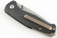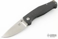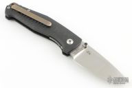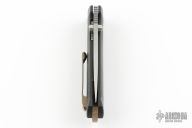 This TUR model sports a carbon fiber handle, a satin finished Elmax steel blade, and a bronzed titanium backspacer and pocket clip.