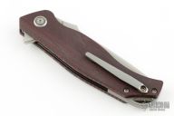 - Bohler M390 blade steel in a drop point shape and satin finish.