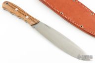 This Canadian Camp by Bark River features a satin finished blade, .187" blade stock and 1.680" blade depth, full tang construction. The handle has Bocote scales with a lanyard hole. Comes with a brown leather sheath. Has some light scuffs, excellent condition otherwise. 1st Production Run.