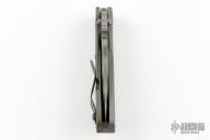This SNG GG by Strider has a tiger stripped spear point blade with dual thumb studs, thumbhole, and notched thumb rest. Handle is aluminum and tiger stripe titanium frame, with lockbar stabilizer and a matching tip up clip. Includes the original titanium pocket clip. Nice detent, lockup and blade seating. Excellent Condition.