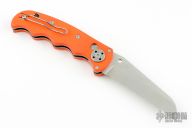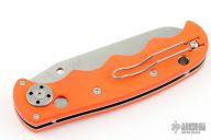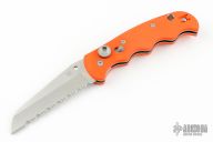 This Spyderco Autonomy features a satin finished fully serrated blade, H-1 Blade steel. The handle has orange G-10 scales, stainless steel liners, and a tip up reversible clip. Excellent condition. Factory Second