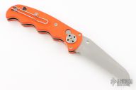 This Spyderco Autonomy features a satin finished fully serrated blade, H-1 Blade steel. The handle has orange G-10 scales, stainless steel liners, and a tip up reversible clip. New condition otherwise. Comes with original box and papers. These were made for the Coast Guard and have no safetly. SUPER RARE